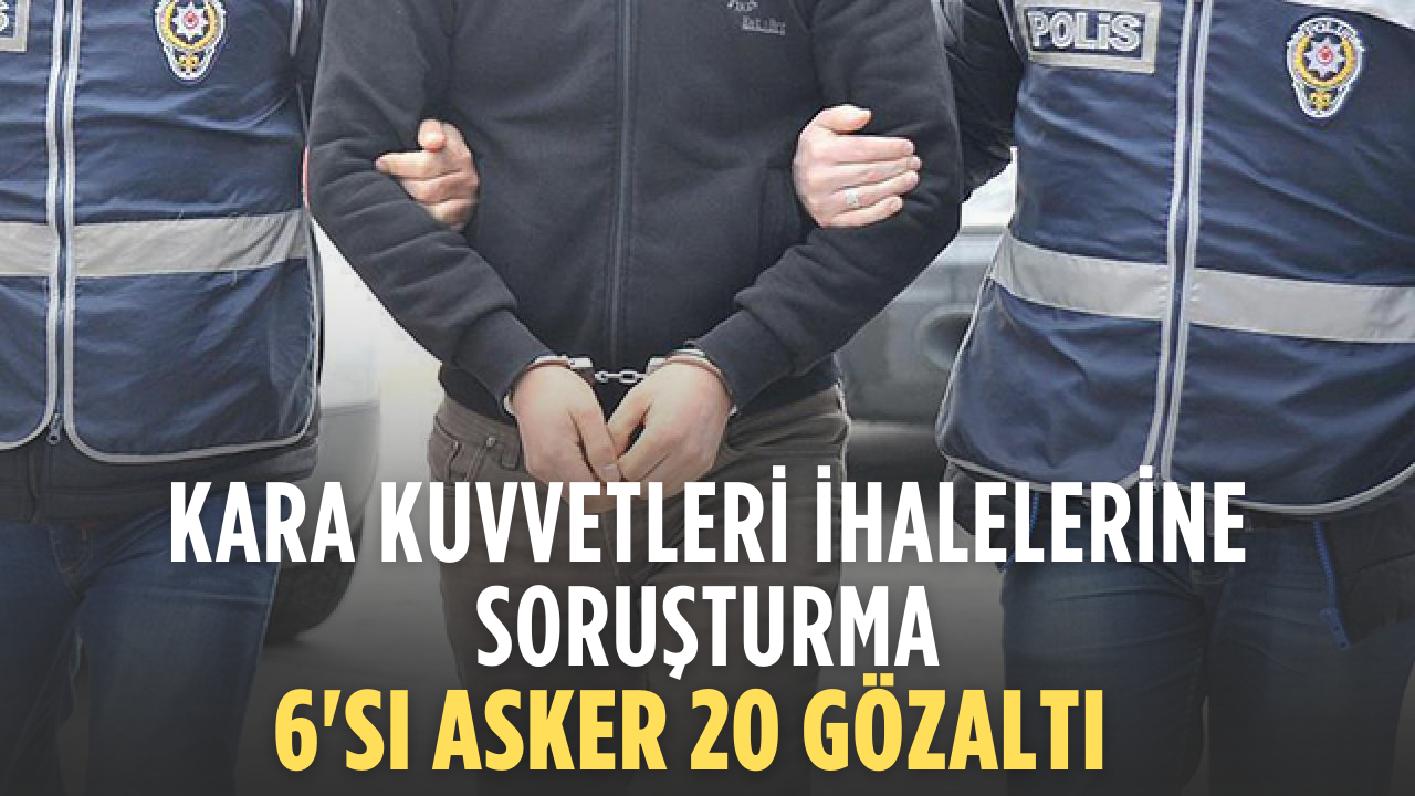 Kara Kuvvetleri Komutanlığı’na ait askeri yük ve yolcu taşıma ihalelerinde kamu zararı oluştuğu iddiasıyla soruşturma başlatıldı. Ankara Cumhuriyet Başsavcılığı’nın talimatıyla yürütülen operasyonda, 6’sı asker 14’ü sivil olmak üzere toplam 20 şüpheli gözaltına alındı.