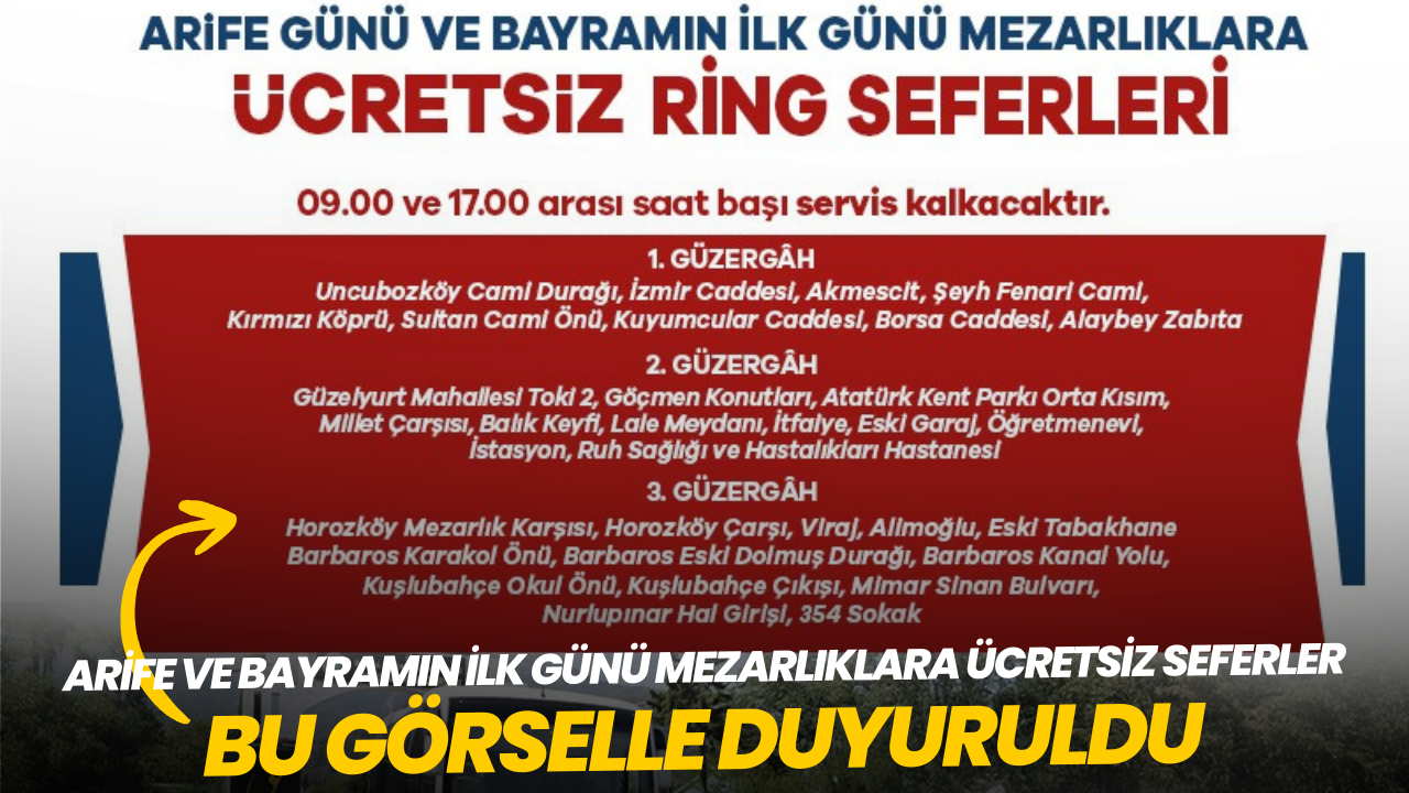 Manisa Büyükşehir Belediyesi, Ramazan Bayramı öncesinde vatandaşların kabristan ziyaretlerini huzur ve kolaylık içinde yapabilmeleri amacıyla ulaşım desteğini bu yıl da sürdürüyor. Arife günü ve bayramın ilk günü uygulanacak hizmet kapsamında, şehir merkezi ve ilçelerde mezarlıklara ücretsiz otobüs seferleri düzenlenecek. Vatandaşların yoğunluk yaşamadan, güvenli ve konforlu bir şekilde mezarlıklara ulaşabilmesi için planlanan seferler, 09.00 ile 17.00 saatleri arasında ring sistemiyle gerçekleştirilecek. Belirlenen güzergâhlarda kesintisiz olarak hizmet verecek araçlar sayesinde, özellikle yaşlı ve ulaşım imkânı kısıtlı vatandaşların ziyaretlerini daha kolay yapmaları sağlanacak.