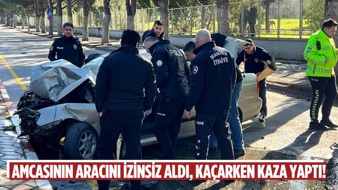 Manisa'nın Soma ilçesinde bir kişinin amcasına ait aracı izinsiz alarak kaçması sonucu yaşanan kovalamaca kazayla sona erdi. Kazada araçta bulunan 2 kişi yaralandı.