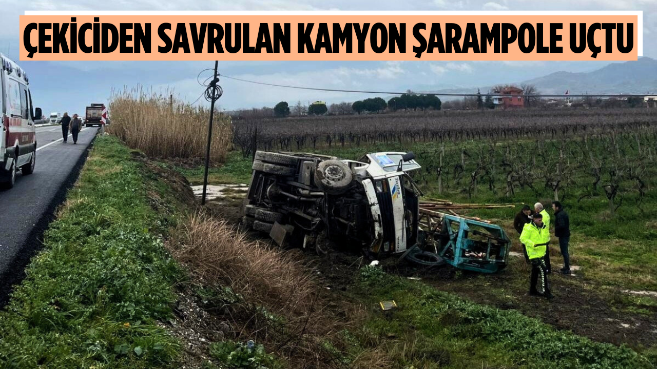 Manisa'nın Salihli ilçesinde çekiciye bağlı kamyonun savrularak yol kenarındaki şarampole uçması sonucu meydana gelen kazada 1 kişi yaralandı.