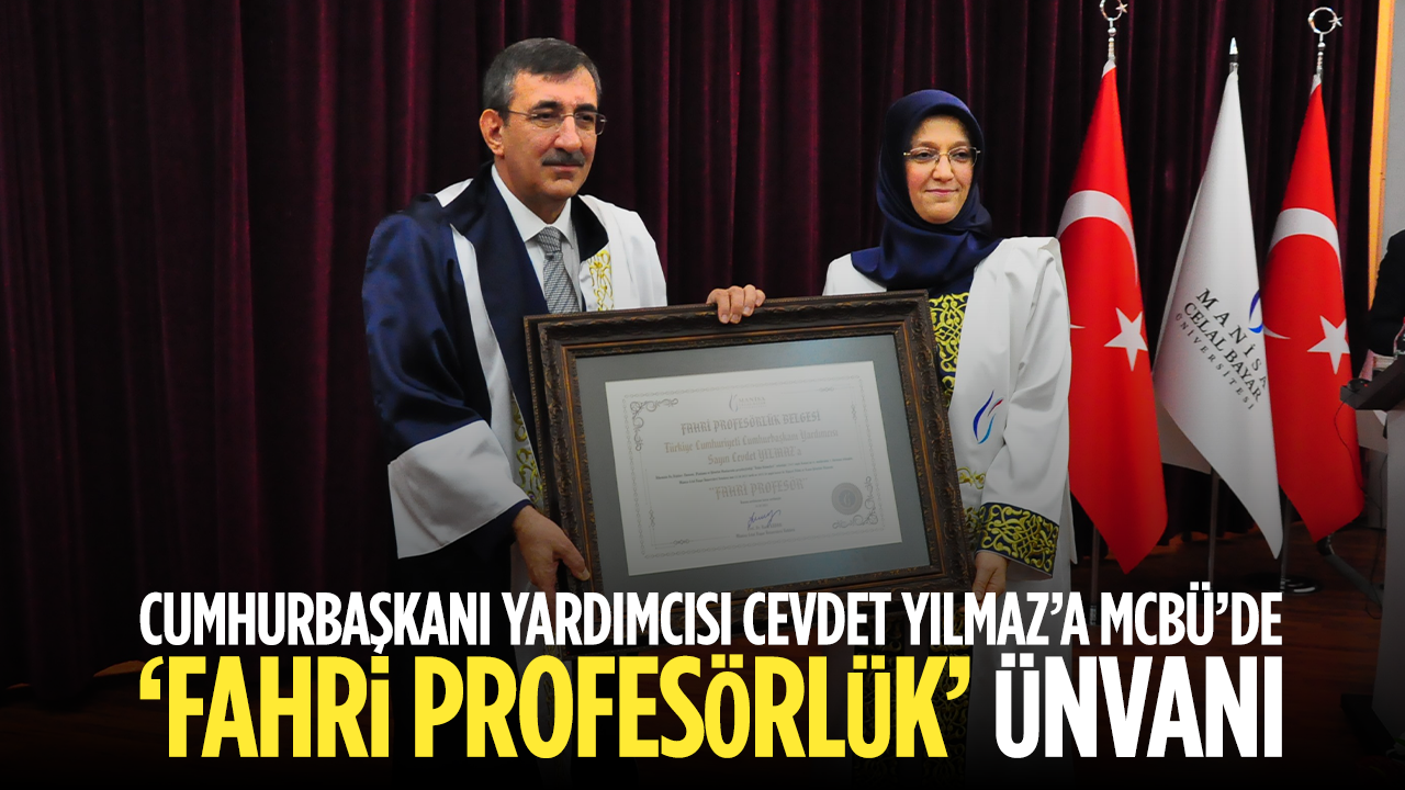 Cumhurbaşkanı Yardımcısı Cevdet Yılmaz, Manisa Celal Bayar Üniversitesi (MCBÜ) 2025-2026 Akademik Yılı Açılış Töreni’ne katıldı. Süleyman Demirel Kültür Merkezi’nde düzenlenen törende Yılmaz’a, üniversite senatosunun kararıyla "Fahri Profesörlük" unvanı takdim edildi.