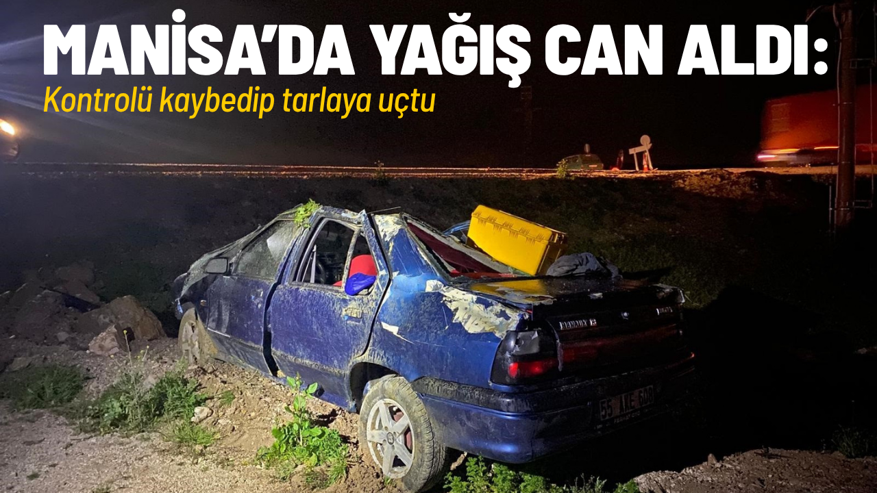 Manisa'nın Kırkağaç ilçesinde yağışlı hava nedeniyle kayganlaşan yolda kontrolden çıkan otomobil tarlaya uçtu. Kazada 1 kişi hayatını kaybetti, 1 kişi de yaralandı.