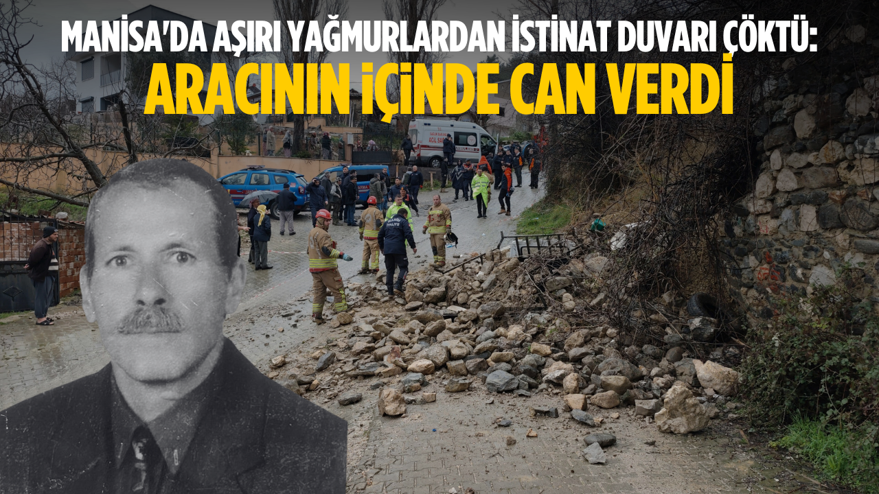 Manisa'da günlerdir etkili olan sağanak yağışlar Yunusemre ilçesine bağlı Karakoca Mahallesinde can aldı. Edinilen bilgiye göre, mahallenin eski muhtarı olduğu öğrenilen Ahmet Yıldırım, evinin önünde bulunan istinat duvarının önüne aracını park ettiği sırada, duvarın aşırı yağışlar nedeniyle çökmesi sonucu meydana gelen göçükte aracının içinde mahsur kaldı.