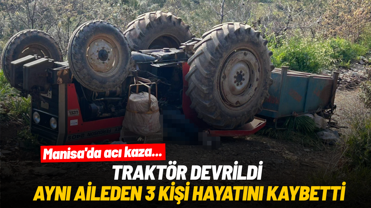 Manisa'nın Turgutlu ilçesinde eğimli arazide kontrolden çıkan traktörün devrilmesi sonucu meydana gelen kazada aynı aileden 3 kişi yaşamını yitirdi.