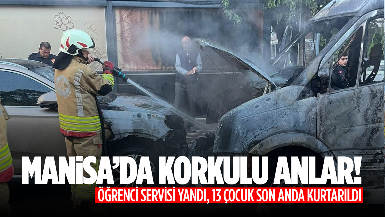 Manisa’nın Turgutlu ilçesinde çocukları almak için duran öğrenci servisinde çıkan yangın paniğe neden oldu. Araçta bulunan 13 çocuk, sürücünün hızlı müdahalesi sayesinde son anda tahliye edildi.