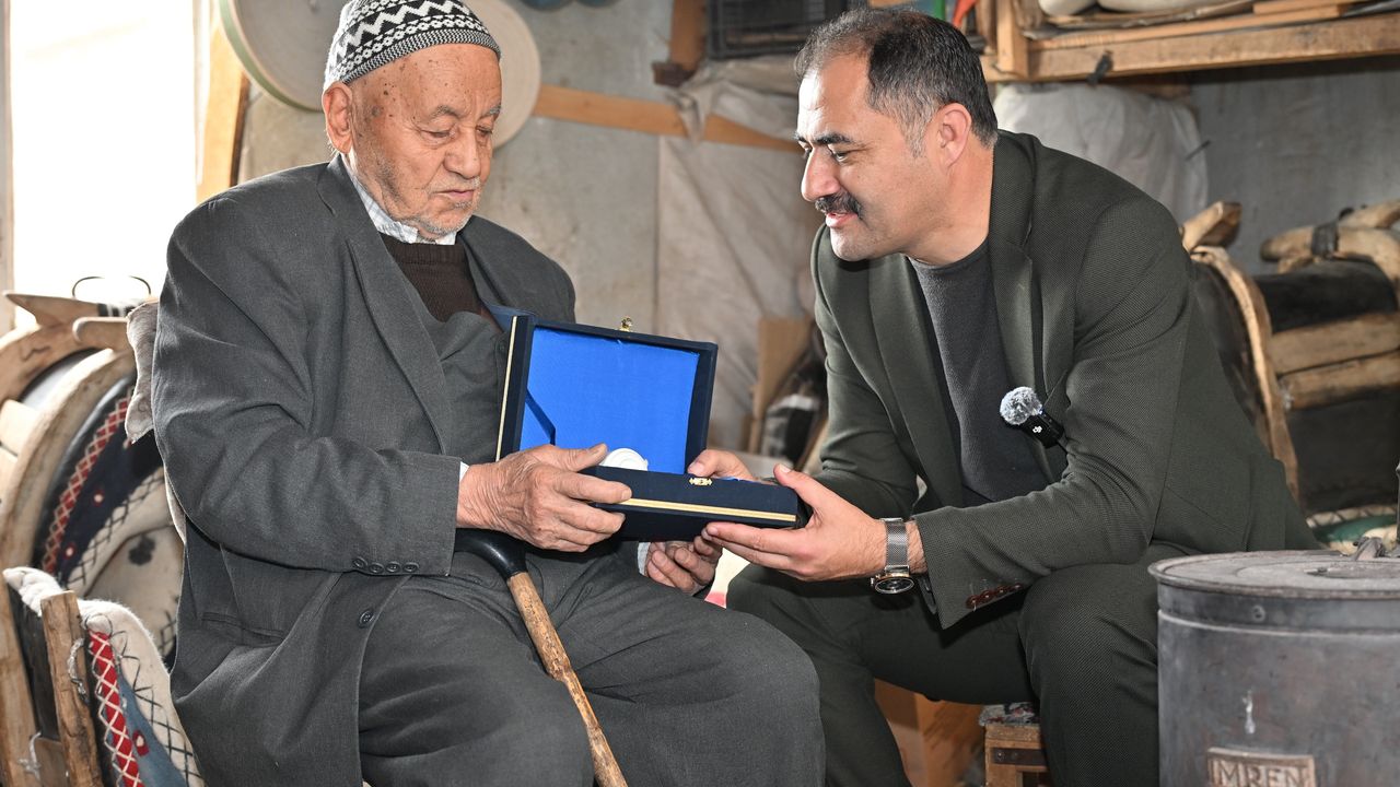 Belediye Başkanı Erkan Kara ziyarette ustalara ve sanatkarlara günün anısına fincan takımı hediye etti.