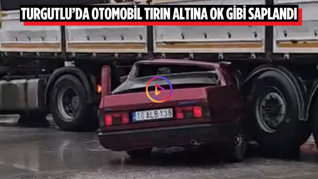 Manisa’nın Turgutlu ilçesinde akaryakıt istasyonundan ana yola çıkış yapan tıra otomobil çarptı. Kaza anı güvenlik kamerasına saniye saniye yansıdı.