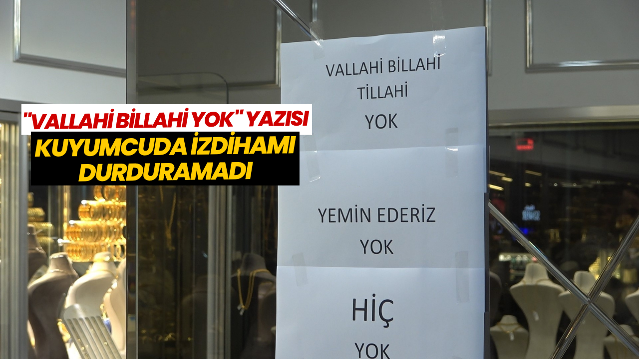 "Vallahi billahi yok, yemin ederim yok" yazısına rağmen müşterilerin ısrarı sürerken, esnaf ile vatandaşlar arasında gülümseten diyaloglar yaşandı. Bir müşterinin "Bir gram da mı yok?" sorusuna kuyumcunun "Yok abi, olsa kendime ayırırım" dediği anlar kameraya yansıdı.